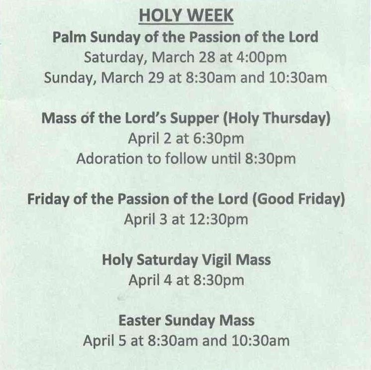 Sunday: 8:30 a.m. and 10:30 a.m.
